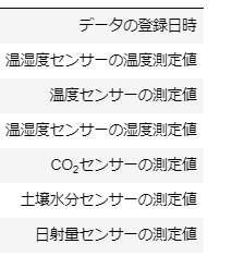 ターゲットはある農家さんのデータで、「みどりクラウド」のセンサーを用いた以下のような カラムをもつ形式でした。